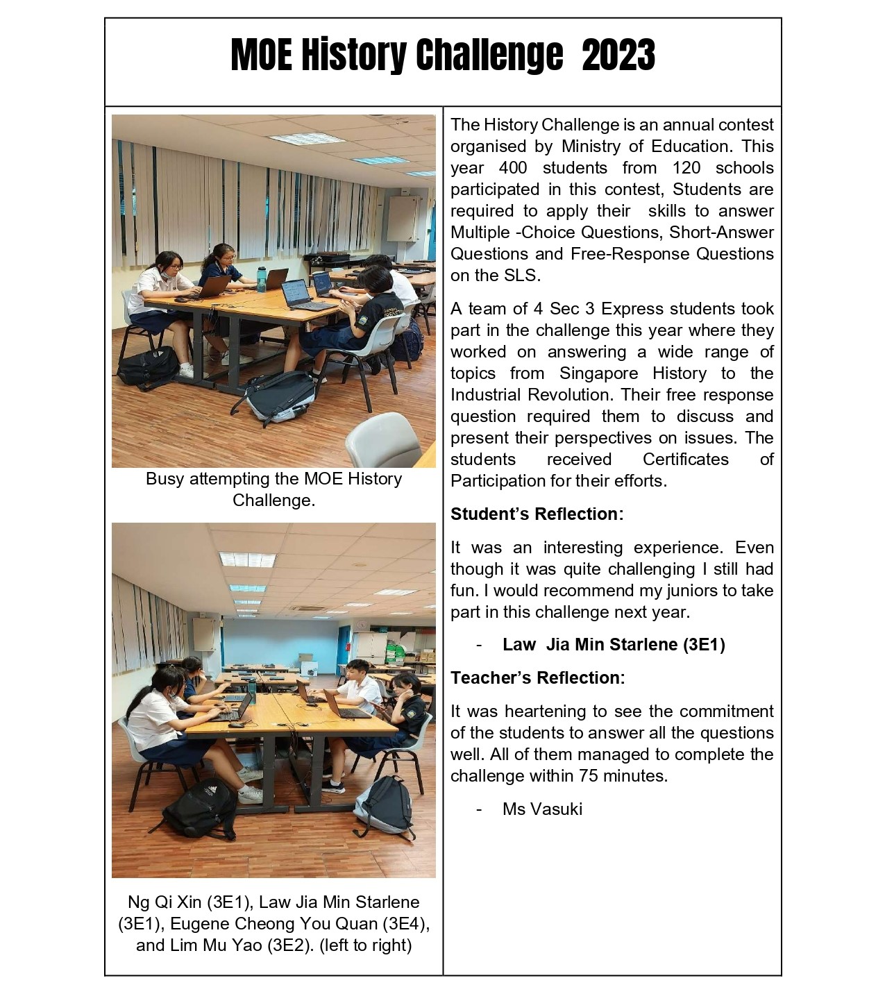 The Humanities Department is driven by dynamic and passionate educators committed to developing students holistically as critical thinkers and effective communicators who love Singapore. Our core mission centers on authentic learning that makes the world our classroom, where students engage with real-world contexts to deepen their understanding of Geography, History, Social Studies, and Commerce. Through innovative teaching approaches and varied assessments, we cultivate students' 21st Century Competencies while fostering a genuine appreciation for Singapore.